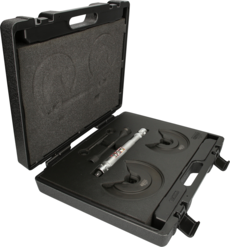 "longDescription": "<ul><li class=\"liste\">zur Montage und Demontage von Spiralfedern an Quer- und Raumlenkerachsen</li><li class=\"liste\">sicherer Ein- und Ausbau ohne Zerlegen der Achse</li><li class=\"liste\">hohe Zeitersparnis</li><li class=\"liste\">neue, überarbeitete Ausführung mit verlängertem Spannweg</li><li class=\"liste\">geeignete Federteller für sicheren Halt der Federspirale</li><li class=\"liste\">spannt die Feder sicher im Federzentrum</li><li class=\"liste\">gute Positionierung durch kompakte Bauform</li><li class=\"liste\">Überlastschutz durch Torsions-Antriebselement</li><li class=\"liste\">einsetzbar an Fahrzeugen mit sehr kleinen Zugangsbohrungen</li><li class=\"liste\">Federhalter mit spezieller Geometrie</li><li class=\"liste\">in stabilem Kunststoffkoffer</li></ul><br><br><strong>Enthaltene Teile:</strong><br>- 1 x Federspanner Grundgerät, 3990 kg<br>- 1 x Torsions-Antrieb 1/2\"x1/2\", 100 Nm<br>- 2 x Federhalter Ø 75-115 mm<br>- 2 x Federhalter Ø 90-140 mm<br>- 2 x Sicherung Federhalter<br>- 1 x Montagestift für Sicherung<br>",