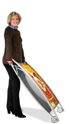 "metaDescription": "Kundenstopper Boston mit Rollen - f. außen, HxBxT 1028x754x700mm, f. DIN A1, beidseitig, Rahmen silber, 2 Rollen",