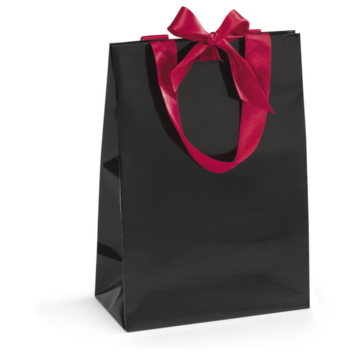 }Lackpapier-Tragetaschen mit Satinschleife 190 x 100 x 270 mm schwarz