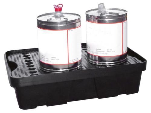 "longDescription": "<h2>Auffangwanne aus PE</h2><strong>auslaufsichere Lagerung von Kleingebinden</strong><br><ul><li>Geeignet für wassergefährdende und ätzende Stoffe</li><li><strong>Robust und langlebig</strong> - aus Polyethylen</li></ul><br><strong>Sie haben die Wahl:</strong><br><ul><li><strong>Für noch mehr Auffangvolumen</strong> - wahlweise mit herausnehmbarem Gitterrost aus PE oder verzinktem Stahl</li></ul><br><strong>Bestimmungen!</strong><br><br>Bauweise der Wannen behördlich zugelassen. Einsatz für gewässergefährdende und aggressive Stoffe zur Lagerung unter Dach.<br>",