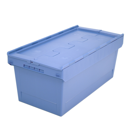 Im Euromaß. Aus bruchsicherem Polypropylen in taubenblau. Das Lagergut lässt sich durch die geschlossenen Wände vor Staub geschützt lagern und der Behälter lässt sich leicht reinigen. Boden geschlossen. Das Lagergut ist vor Staub und Schmutz geschützt durch den zweiteiligen Scharnierdeckel. Mit offenem Deckel ineinander stapelbar. Für Rollenbahnen geeignet. Temperaturbeständig von -20 °C bis +80 °C.