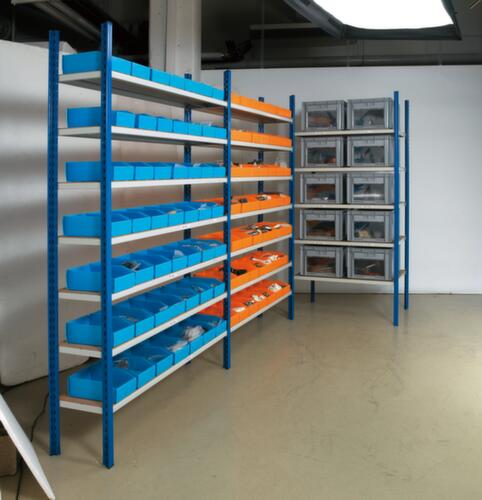 "metaDescription": "Lagerregal mit Sichtlagerkästen für ölige Teile - 50 Kästen, HxBxT 2000x1250x300 mm, 7 Gitterböden, blau/grau",