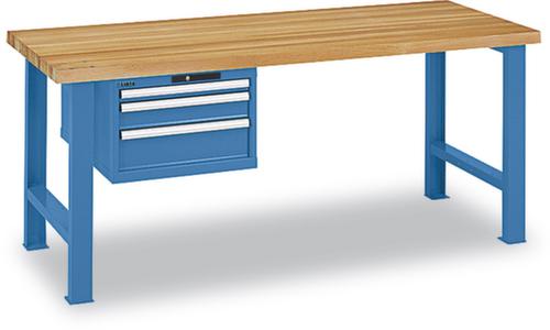 "longDescription": "<h2>Werkbank</h2><strong>preiswerte und funktionale Industriequalität</strong><br><ul><li><strong>Stabil und kratzfest</strong> - Gestell aus Stahl mit Pulverbeschichtung</li><li><strong>Leichter Auszug bei hoher Belastung</strong> - Schubladen auf kugelgelagerten Teleskopschienen mit Vollauszug</li><li><strong>Übersichtlich arbeiten</strong> durch beschriftbare Griffleisten</li><li><strong>Diebstahlsicher</strong> - Zentralverschluss mit Sicherheitszylinderschloss</li></ul><br><br><strong>Nicht das gefunden, was Sie benötigen?</strong><br><br>Wir bieten Ihnen gerne bedarfsgerechte Lösungen an. Für eine individuelle Planung <a href=\"info/de-de/kontaktformular\">sprechen Sie uns bitte an</a>. Wir beraten Sie gerne persönlich am Telefon oder auch direkt vor Ort durch unseren Außendienst.<br>",
