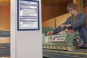 Wichtige Warnhinweise und Aushänge werden im DURAFRAME Info-Rahmen sicherpräsentiert. Das Dokument bleibt geschützt vor Staub und Feuchtigkeit und fälltdurch die individuell mögliche Farbgebung des Rahmens direkt auf.