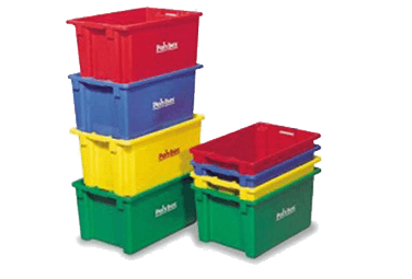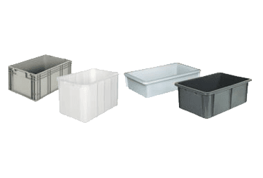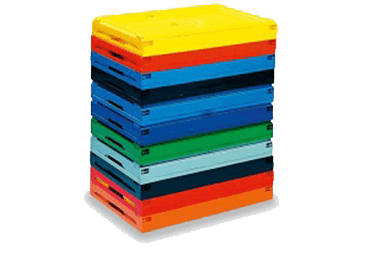 Eine weitere Variante sind die Drehstapelbehälter, die voll gestapelt werden können und nach einer 180 Grad Drehung sowie auch leer ineinander gestapelt werden können. Diese platzsparenden Behälter sind selbstverständlich in verschiedenen Größen und Farben erhältlich.