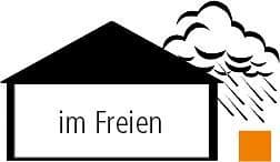 LAGERUNG IM FREIEN Diese Kennzeichnung gibt an, dass Sie die jeweils angegebenen Gefahrstoffe im Freien lagern können, da die Gefahrstoffe gegen Wettereinflüsse geschützt werden. Nicht berücksichtigt sind hierbei bauliche Vorschriften wie zum Beispiel Abstände zu Nachbargrundstücken oder der Brandschutz.