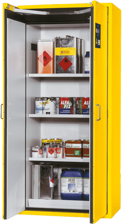 Wir helfen Ihnen, die richtige, gesetzeskonforme Lagerung für Ihre Gefahrstoffe umzusetzen. Je nach Produktart, Gefahrstoffeinstufung, -kennzeichnung und Lagerort empfehlen wir Ihnen aus unserem umfangreichen Sortiment genau das Passende und stellen auf Wunsch auch gerne ein Prüfzertifikat oder eine Zulassung zur Verfügung.