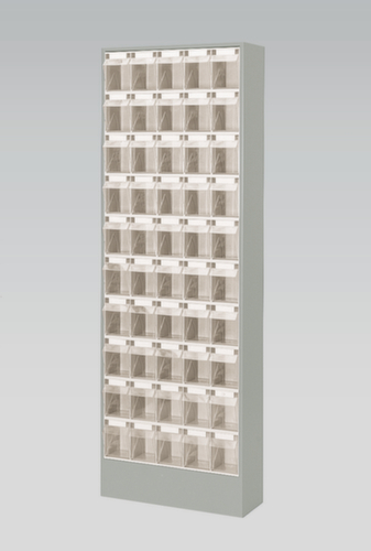 "metaDescription": "Magazinschrank mit Klappkästen, 50 Kästen, transparent - HxBxT 1820x634x200mm, 50 Kästen, Gehäuse lackiert",