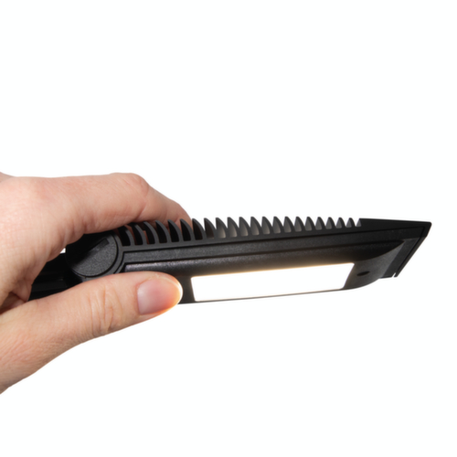 Kopf dreh- und neigbar, Arm neigbar, Armlänge 550 mm. Aufstellung mit Standfuß, Fuß Länge x Breite 190 x 160 mm. Aus Aluminium in silber.