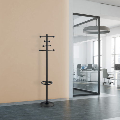 "title": "MAUL Garderobenständer MAULsaphir mit Schirmhalter, mit 8 Haken, RAL9004 Signalschwarz",