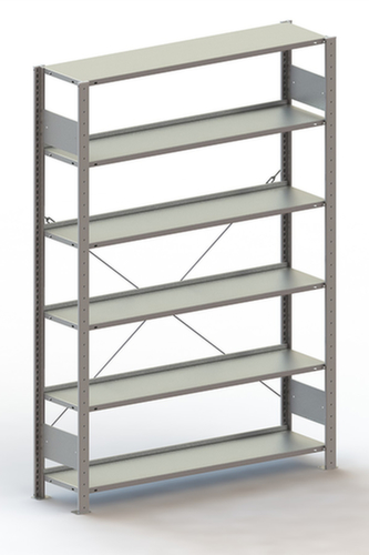 Für Ihre Sicherheit: nach DIN EN 15635 müssen Fachbodenregale ab einer 4-fachen Höhe zur Regaltiefe (Verhältnis 4:1) am Boden befestigt und gesichert werden. Die angegebenen Fachlasten gelten bei gleichmäßiger Lastverteilung. Zusätzliche Böden/Ebenen sind als Zubehör erhältlich und bis zur max. Feldlast erweiterbar.