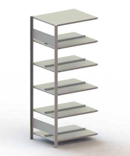 Anbauregal mit 1 Ständerrahmen, Längsriegel und Ebenen gem. Angebot