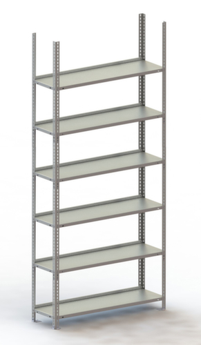 Die wichtigsten Maße des META Lagerregals auf einen Blick:6 Ebene(n) mit Stahlboden. Ebenen mit Anschlagkante gegen das Herausfallen von Ware und Sicherheitskantung zum Schutz vor Verletzungen. Nutzung einseitig - zur Aufstellung an der Wand konzipiert. Hohe Stabilität in Längs- und Tiefenrichtung. Konstruktion aus Stahl, Ständer verzinkt mit schlag- und kratzfester Pulverbeschichtung in RAL7035 Lichtgrau, Ebenen verzinkt mit schlag- und kratzfester Pulverbeschichtung in RAL7035 Lichtgrau.