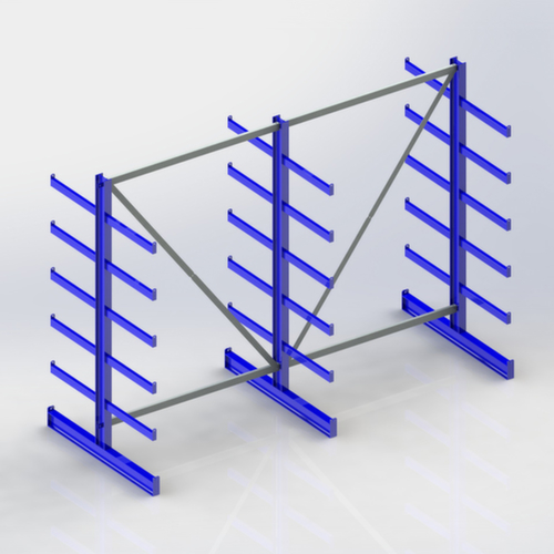Die wichtigsten Maße des META Kragarmregals Atlas ST auf einen Blick:Nutzung beidseitig - flexible Aufstellung frei im Raum möglich. 6 Lagerebenen. 5 Ebene(n) mit Kragarm, mit Abrollsicherung. Traglast je Arm 200 kg. Gleich lange Arme, gerade ausgerichtet. Nutztiefe 500 mm. Konstruktion aus Stahl. Ständer sandgestrahlt mit Pulverbeschichtung in RAL5010 Enzianblau. Kragarme sandgestrahlt mit Pulverbeschichtung in RAL5010 Enzianblau.