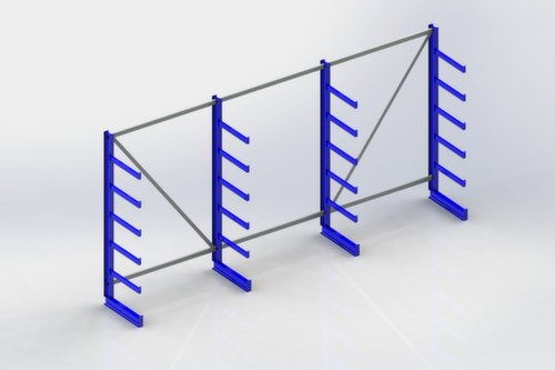 Die wichtigsten Maße des META Kragarmregals Atlas ST auf einen Blick:Nutzung einseitig - zur Aufstellung an der Wand konzipiert. 6 Lagerebenen. 5 Ebene(n) mit Kragarm, mit Abrollsicherung. Traglast je Arm 200 kg. Gleich lange Arme, gerade ausgerichtet. Nutztiefe 500 mm. Konstruktion aus Stahl. Ständer sandgestrahlt mit Pulverbeschichtung in RAL5010 Enzianblau. Kragarme sandgestrahlt mit Pulverbeschichtung in RAL5010 Enzianblau.