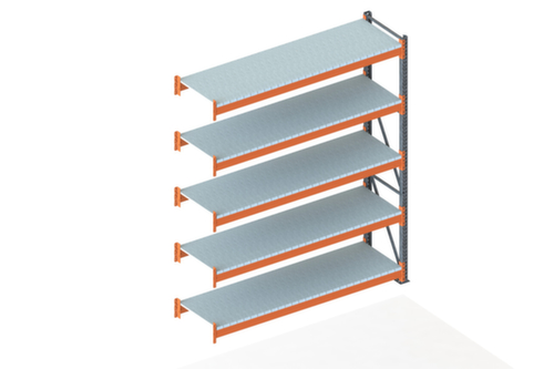 Die wichtigsten Maße des META Weitspannregals Multipal S auf einen Blick:5 Ebene(n) mit Stahlpaneele. Fachhöhen je nach Einsatzzweck und Ihrem Bedarf im Raster von 50 mm verstellbar. Nutzung einseitig - zur Aufstellung an der Wand konzipiert. Konstruktion aus Stahl. Ständer mit korrosionsschützender Zinkbeschichtung. Ebenen mit korrosionsschützender Zinkbeschichtung. Traversen mit schlag- und kratzfester Pulverbeschichtung in RAL2001 Rotorange.