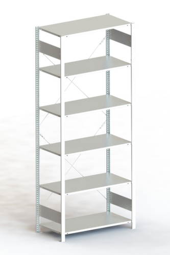 Die wichtigsten Maße des META Lagerregals S3 Clip 80 auf einen Blick:6 Ebene(n) mit Stahlboden. Fachhöhen je nach Einsatzzweck und Ihrem Bedarf im Raster von 25 mm verstellbar. Aufstellwinkel gerade. Nutzung einseitig - zur Aufstellung an der Wand konzipiert. Konstruktion aus Stahl, Ständer verzinkt mit schlag- und kratzfester Pulverbeschichtung in RAL7035 Lichtgrau, Ebenen verzinkt mit schlag- und kratzfester Pulverbeschichtung in RAL7035 Lichtgrau.