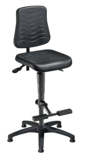 "longDescription": "<h2>Arbeitsstuhl</h2><br><h3>Sitz und Rücken:</h3><ul><li>Aus leicht zu reinigendem PU-Schaum</li></ul><br><h3>Sitztechnik:</h3><ul><li>Sitzhöhenverstellung mittels Gasfeder</li><li>Mit Sitzneigungsverstellung</li><li>Rücken pendelnd gelagert</li><li>Höhen- und neigungsverstellbar</li></ul><br><h3>Fußkreuz:</h3><ul><li>Einfach zu montieren</li><li>Mit Bodengleitern</li></ul><br><h3>Fußstütze:</h3><ul><li>Individuell höhenverstellbar</li></ul><br>Bitte beachten Sie:<br><br>Bei dieser Ausführung dürfen wegen der Kippsicherheit keine Rollen montiert werden.<br><br>5 Jahre Garantie<br><br><br><h3>Erfüllte Richtlinien / Norm:</h3><ul><li>Entspricht DIN 68877</li><li>GS-Zeichen</li></ul>",