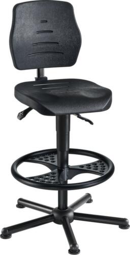 Mit Stuhlmechanik samt Anti-Schock-Sicherung gegen das nach vorne Schnellen der Lehne auch nach dem Lösen der Arretierung. Mit Standardsitz aus PU-Schaum in schwarz. Stuhl mit Sitzneigungsverstellung und zusätzlich drehbar. Neigung verstellbar von 5 bis -4 °. Sitzhöhenverstellung über Gasfeder durch Hebel.