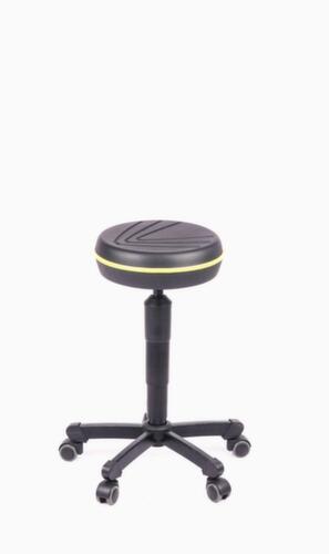 "description": "Sitz HxØ 455-580x330mm, PU-Schaum-Rundsitz schwarz, Gestell schwarz, 5 Lenkrollen",