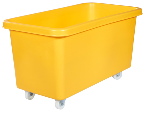 Aus schlagfestem Polyethylen in gelb. Das Lagergut lässt sich durch die geschlossenen Wände vor Staub geschützt lagern und der Behälter lässt sich leicht reinigen. Boden geschlossen mit Verstärkung durch Sperrholzplatte. Untergebaute Rollen ermöglichen einen einfachen Transport. Platzsparend ineinander stapelbar. Lebensmittelgeeignet. Temperaturbeständig von -40 °C bis +80 °C.
