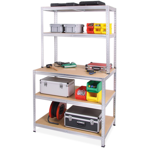 "longDescription": "<h2>Montagetisch</h2><strong>für viele Einsatzzwecke und Arbeiten geeignet<br>preisgünstige Komplettangebote und für viele Einsatzzwecke</strong><br><ul><li><strong>Hohe Stabilität</strong> - Arbeitsplatte und Ablageböden aus Holz mit umlaufendem Kantenschutz durch erhöhten Rahmen und Unterzügen aus Stahl</li><li>4-Fußgestell aus Stahl</li><li><strong>Einfacher Aufbau</strong> - ohne Werkzeug mit praktischen Steckverbindungen</li></ul><br><strong>Sie haben die Wahl:</strong><br><ul><li><strong>Mehr Ablagefläche</strong> - mit bis zu 4 Ablageböden</li></ul>",