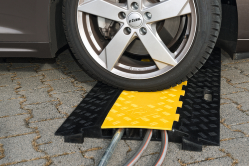 Die wichtigsten Maße auf einen Blick:Aus Hartgummi in schwarz. Ausgestattet mit geriffelter, rutschhemmender Struktur. 5 Kabelkanäle, 38 x 35 mm.