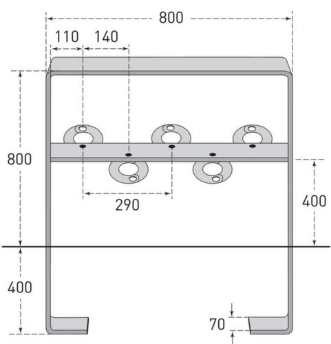 "description": "Länge 800 mm, aus feuerverzinktem Flachstahl, wahlweise mit Knierohr, in verschiedenen Höhen und Ausführungen",