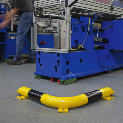 "longDescription": "<h2>Rammschutzbalken</h2><strong>hält Fahrzeuge auf den vorgesehenen Verkehrswegen</strong><br><ul><li><strong>Stoppt Hub- und Transportwagen</strong> und schützt dadurch Regale und Maschinen vor Anfahrschäden</li><li><strong>Einfacher Übergang</strong> bleibt dank niedriger Bauhöhe erhalten</li><li><strong>Signalwirkung</strong> - mit Kunststoffbeschichtung in gelb mit schwarzen Signalstreifen</li><li>Mit abgeschrägten Rohrenden</li><li><strong>Stabil und robust</strong> - aus Stahlrohr</li><li><strong>Einfache Montage</strong> - Bodenplatte mit vorgebohrten Löchern zum Aufdübeln</li></ul><br><strong>Direkt mitbestellen</strong><br><ul><li><strong>Spezialdübelset mit Schrauben</strong> - 4 Stück pro Gerade, 6 Stück pro Ecke erforderliche</li></ul>",