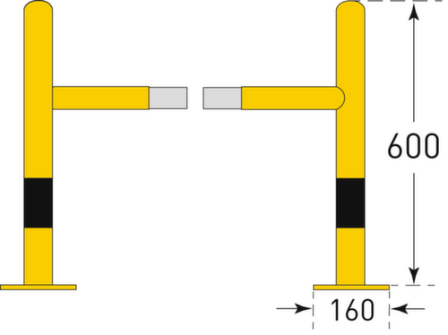 "description": "H 600 mm, Rohrbügel D 60 mm, steckbar, zweiteilig, verzinkt oder gelb/schwarz",
