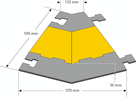 Die wichtigsten Maße auf einen Blick:Aus Hartgummi in gelb/schwarz. Ausgestattet Unterseite mit Antirutsch-Gummilippen. 5 Kabelkanäle, 38 x 35 mm.