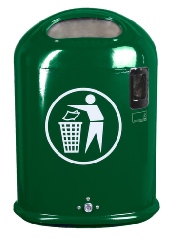 "longDescription": "<h2>Abfallbehälter</h2><strong>mit ovaler Einwurföffnung</strong><br><ul><li><strong>Robust und stabil</strong> - aus feuerverzinktem Stahlblech</li><li><strong>Einfache Entleerung</strong> durch verschließbare Bodenklappe</li><li>Lieferung inklusive Dreikatschlüssel</li></ul><br><h3>Sie haben die Wahl:</h3><ul><li><strong>Raucherfreundlich</strong> - wahlweise mit integriertem Ascher</li><li><strong>Offen oder veschlossen</strong> - Einwurföffnung wahlweise mit selbstschließender Klappe aus Edelstahl</li><li><strong>Langlebig oder auffällig</strong> - Oberfläche feuerverzinkt oder mit farbiger Pulverbeschichtung</li></ul><br><strong>Direkt mitbestellen:</strong><br><ul><li><strong>Passendes Befestigungsmaterial</strong> - Pfosten, Schellensets uvm.</li><li><strong>Gute Sichtbarkeit</strong> - Aufkleber \"Saubermännchen\"</li></ul><br>Dieser Mülleimer, wahlweise mit integriertem Aschenbecher, mit ovaler Einwurföffnung ist zur Wand- oder Pfostenmontage geeignet. Durch den verzinkten Stahl, wahlweise auch mit zusätzlicher Pulverbeschichtung in blau, schwarz oder grün, ist der 45 Liter- Abfalleimer robust und im Außenbereich einsetzbar.<br><br>Erhältlich ist der Abfallbehälter entweder mit einer normalen Öffnung oder mit einer selbstschließenden Federklappe um Gerüche zu vermeiden. Die Entleerung erfolgt durch verschließbare Bodenklappe, der Dreikantschlüssel aus Metall wird mitgeliefert.<br>",