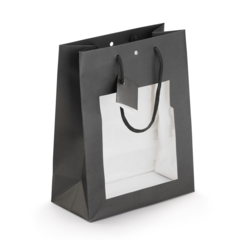 "title": "Papiertragetaschen mit Sichtfenster schwarz 220 x 280 x 110 mm",