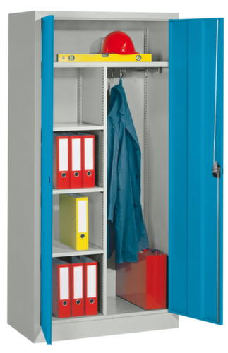 Ideal für den Einsatz in Büros oder auch Werkstattbüros oder Lagerbüros im Produktionsbereich und Handwerksbetrieben. Der Mehrzweckschrank bietet ausreichend Stauraum für Aktenordner und andere Büromaterialien, während gleichzeitig Platz für Jacken, Taschen, Schuhe und andere persönliche Gegenstände bleibt.