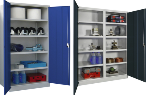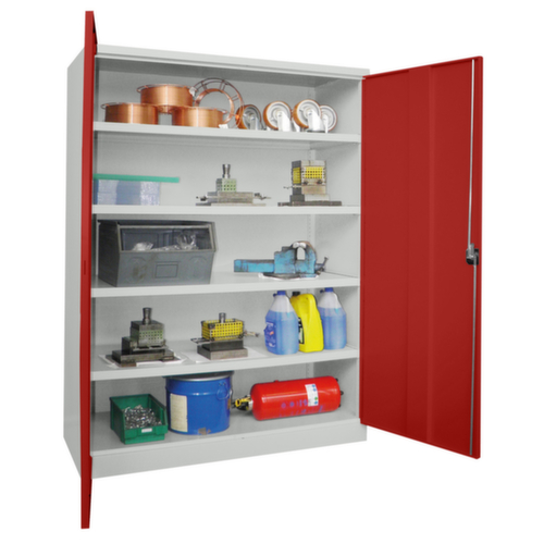 Durch seine besonders robuste Konstruktion ist der strapazierfähige Industrieschrank für den anspruchsvollen und täglichen Gebrauch bestens gewappnet. Mit seiner hohen Gesamttraglast bietet er sicheren und geordneten Stauraum für schwere Güter, Arbeitsmittel und Werkzeuge in Industriebetrieben, Werkstätten und Lagern.