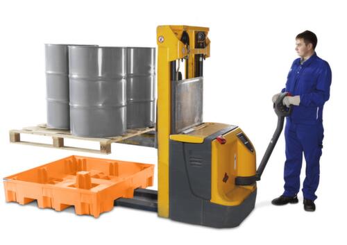 Die wichtigsten Maße der Auffangwanne base-line auf einen Blick:Aus Polyethylen in orange. Behälter ohne Gitterrost. Mobil einsetzbar. Zum einfachen Transportieren mit Einfahrtaschen ausgestattet. Allseitig einfahrbar.