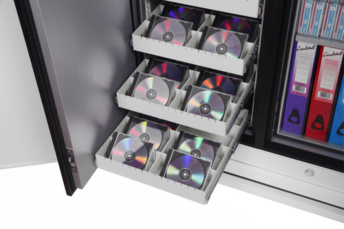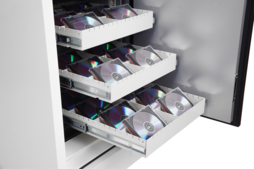 Der Schrank ist optimal geeignet zur Brandschutzlagerung von Computerdisketten, Magnetbändern und allen Formen der Datenspeicherung.