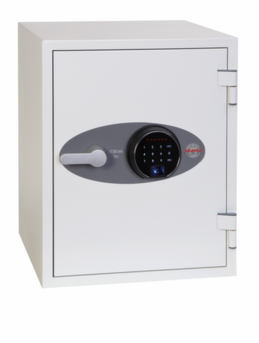 1 Schublade, 4 Schlüsselhaken und 1 höhenverstellbarer Einlegeboden. Mit Flügeltür. Verschließbar mit Touchscreen-Tastaturschloss und Fingerabdrucksensor mit LED-Anzeige für 32 Fingerabdrücke, Batterieanzeige, internem Alarm, Mehrbenutzercodes, Dualmodus und Zufallscode. Konstruktion aus Stahlblech. Korpus mit Lackierung in RAL9003 Signalweiß. Front mit Lackierung in RAL9003 Signalweiß.