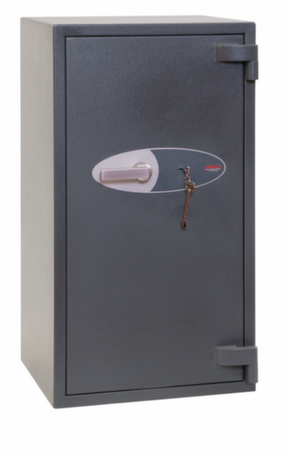 Ausstattung: Böden. Mit Flügeltür. Verschließbar mit Hochsicherheits-Doppelbartschloss der VdS-Klasse II. Verriegelung über 3-Wege-Winkelverriegelungsbolzen und sorgt somit für hohe Robustheit. Konstruktion aus Stahl. Korpus in RAL7024 Graphitgrau. Front in RAL7024 Graphitgrau. Vorbereitet zur Boden-/Rückwandverankerung.