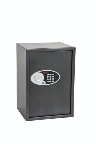 Ausstattung: Boden und helle LED-Innenbeleuchtung, damit der Inhalt auch in schlecht beleuchteten Schränken sichtbar ist. Mit Flügeltür. Verschließbar mit manipulationssicherem Elektronikschloss. Verriegelung über zwei aktive Verriegelungsbolzen für erhöhte Sicherheit. Konstruktion aus Stahl. Korpus mit kratzfester Lackierung in metallic-silber. Front mit kratzfester Lackierung in metallic-silber. Vorbereitet zur Boden-/Rückwandverankerung.