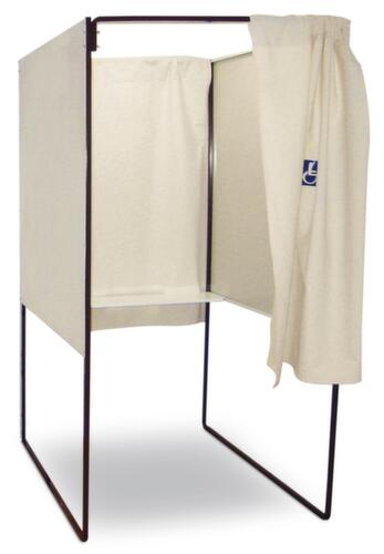 "longDescription": "<h2>Wahlkabine für Rollstuhlfahrer</h2><strong>optimale Ausstattung für die nächsten Wahlen</strong><br><ul><li><strong>Robust und kratzfest</strong> - Stahlgestell mit Lackierung</li><li><strong>Schutz vor unerwünschten Blicken</strong> - Seitenwand aus Blech mit farbiger Lackierung</li><li><strong>Rundum Sichtschutz</strong> durch Vorhänge aus ungebleichter Baumwolle</li><li><strong>Sofort einsatzbereit</strong> - mit Höhen angepasstem Schreibbrett</li><li>Vorhänge mit Kennzeichnung für Rollstuhlfahrer</li></ul>",