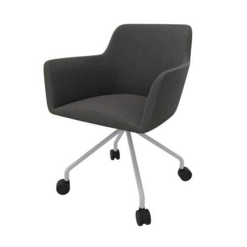 Ideal zum Einsatz in Wartebereichen, Besprechungs- und Konferenzräumen oder sonstigen Büroumgebungen. Dank der einzigartigen Verbindung von Praktikabilität mit künstlerischer Eleganz finden Sie in den Stühlen der Serie City Ihren passenden Besucherstuhl. 4-Fußgestell mit 4 Rollen aus Rundrohr-Stahl verchromt. Ausgestattet mit starren Armlehnen. Sitzschale aus PU-Schaum in anthrazit.