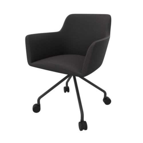 Ideal zum Einsatz in Wartebereichen, Besprechungs- und Konferenzräumen oder sonstigen Büroumgebungen. Dank der einzigartigen Verbindung von Praktikabilität mit künstlerischer Eleganz finden Sie in den Stühlen der Serie City Ihren passenden Besucherstuhl. 4-Fußgestell mit 4 Rollen aus Rundrohr-Stahl mit Epoxidpulverbeschichtung in dunkelgrau. Ausgestattet mit starren Armlehnen. Sitzschale aus PU-Schaum mit PU-Schaumpolster in dunkelbraun.