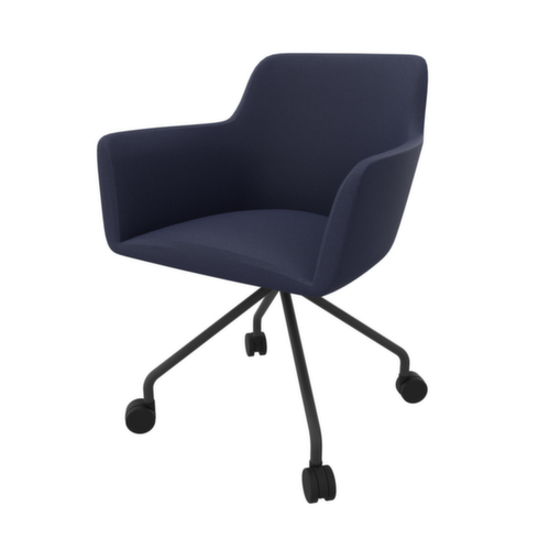 Ideal zum Einsatz in Wartebereichen, Besprechungs- und Konferenzräumen oder sonstigen Büroumgebungen. Dank der einzigartigen Verbindung von Praktikabilität mit künstlerischer Eleganz finden Sie in den Stühlen der Serie City Ihren passenden Besucherstuhl. 4-Fußgestell mit 4 Rollen aus Rundrohr-Stahl mit Epoxidpulverbeschichtung in dunkelgrau. Ausgestattet mit starren Armlehnen. Sitzschale aus PU-Schaum mit PU-Schaumpolster in hellblau.