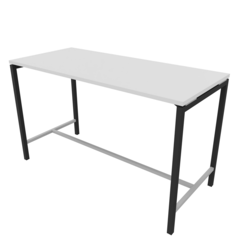 Plattenform eckig. 4-Fußgestell mit Quer- und Längsstreben aus 40 x 40 mm Vierkantstahlrohr mit Epoxidpulverbeschichtung in dunkelgrau. Traversen silber. Nivellierfüße sorgen durch den Ausgleich von Unebenheiten für einen stabilen Stand. Platte aus Holzwerkstoffplatte mit kratzfester und pflegeleichter Melaminharzbeschichtung in Dekor weiß. Plattenstärke 30 mm. Alle Kanten sind durch schlagfeste ABS-Umleimer vor unschönen Rissen und Ausbrechen geschützt.