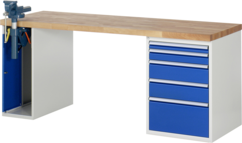 5 Schubladen, 1 Schrank, 1 Schraubstock