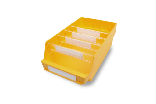 Aus bruchsicherem Polypropylen, in gelb. Seitliche Nutenführungen und Bodenfixierungen ermöglichen das Einstecken von Querteilern und erlauben somit eine individuelle Kasten-Unterteilung. Sichtöffnung. Mit Etikettierfläche. Temperaturbeständig von -20 °C bis +80 °C. Material Lebensmittelgeeignet.