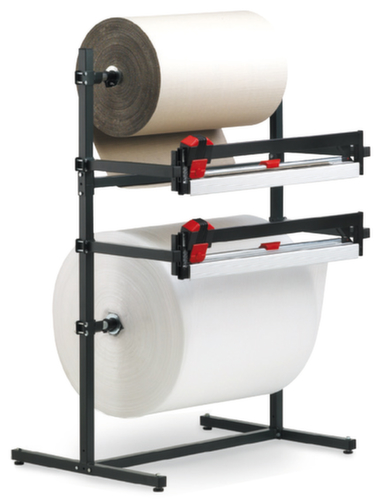 "longDescription": "<h2>Doppel-Schneidständer</h2><strong>preisgünstig und zuverlässig</strong><br><ul><li><strong>Immer die richtige Länge</strong> - liefert Papier, Wellpappe oder Folie schnell und einfach in der gewünschten Länge</li><li><strong>Flexibel einsetzbar</strong> als frei stehendes Spendersystem oder in vorhandene Packstationen integrierbar</li><li><strong>Robust und schlagfest</strong> - stabile Stahlkonstruktion mit Pulverbeschichtung</li><li><strong>Fester Stand</strong> durch Standfüße</li><li>Geeignet für Papier, Pappe und Weichfolie</li><li><strong>Mehr Möglichkeiten</strong> - mit 2 Schneidvorrichtungen und stufenlos höhenverstellbarer Austritthöhe für das Material</li><li><strong>Auffällig</strong> - Bedienelemente in rot</li><li><strong>Unfallsicherer Schnitt in beide Richtungen</strong> - ergonomischer Schneidschlitten</li></ul>",