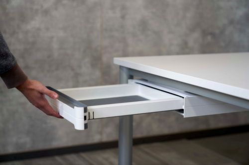 "metaDescription": "Schubladen-Unterbau - f. elektr. höhenver. Schreibtisch, HxBxT 70x430x410mm, Kunststoff, weiß, Front weiß/grau, 1 Schublade(n)",