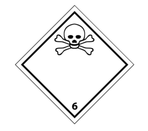"metaDescription": "Gefahrgut-Etikett - giftige Stoffe, LxB 100x100mm, Kern Ø 40mm, Papier, schwarz/weiß",